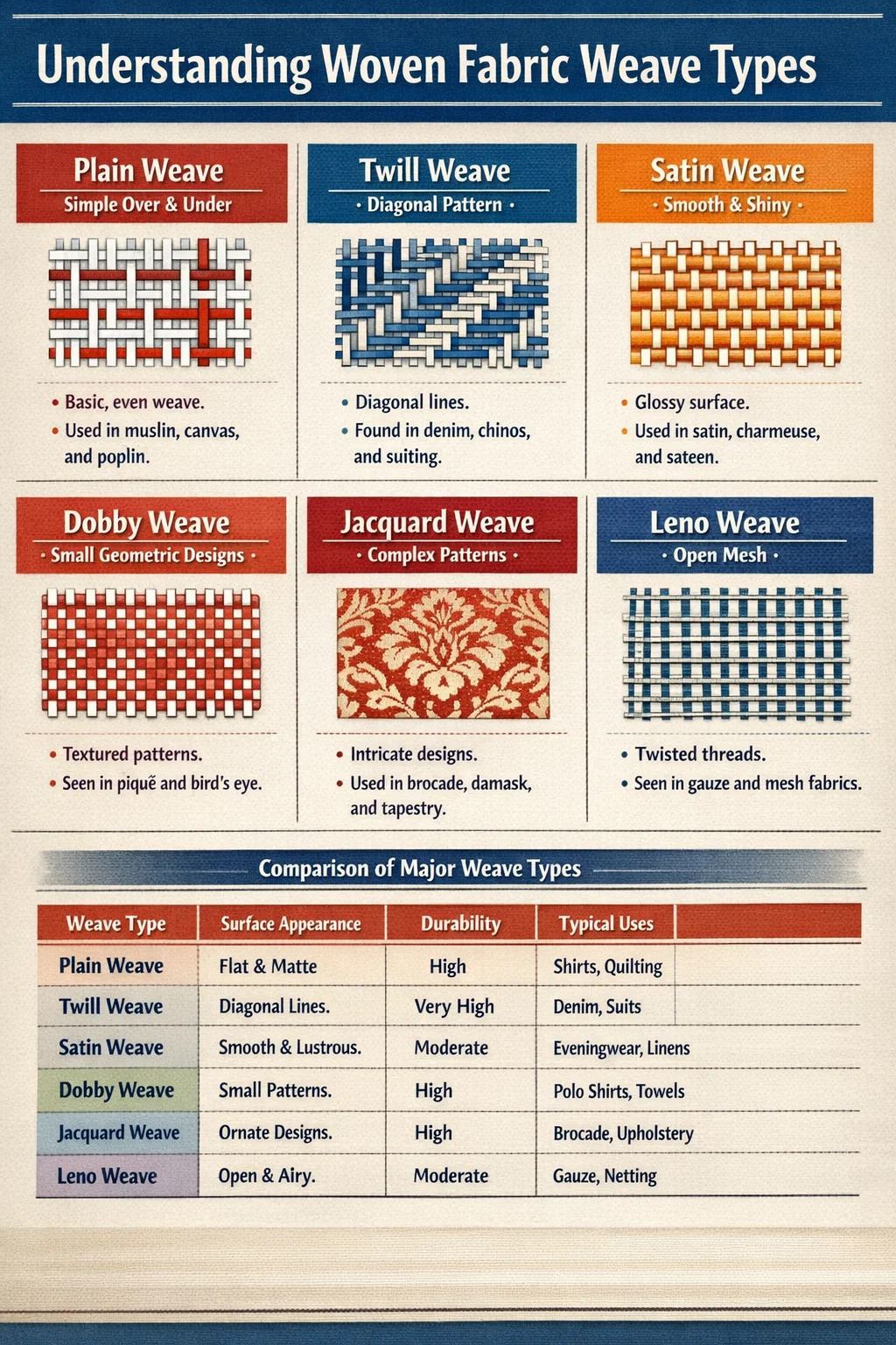 Comparaison des principaux types de tissage de tissus